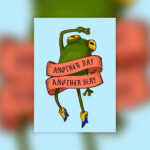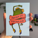 A6 postcard featuring a fabulous frog in cowboy boots with the text “Another Day Another Slay”.