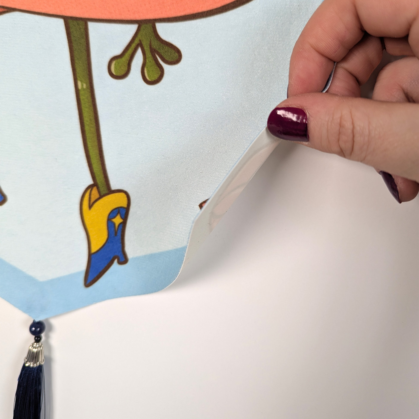 Våra tygbanners har praktiska hål i hörnen med metallöljetter, och du kan hänga upp dem antingen på små spikar, eller med t ex dessa smarta självhäftande krokar från Command.