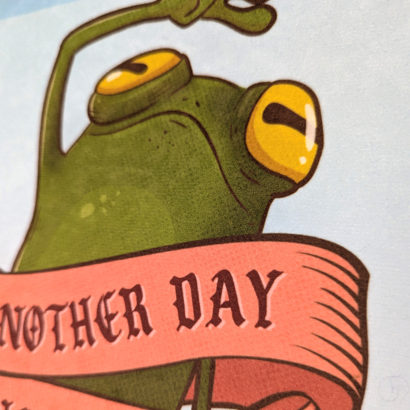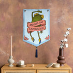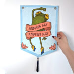 Handgjord väggbonad med vår älskade fab groda i cowboyboots, med texten ”Another Day Another Slay”.