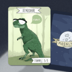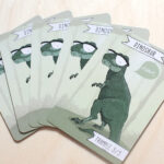 Ett set med 5 gröna Dinosaur-tokens med trample för Magic: the Gathering.