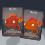 Ett set med 5 dubbelsidiga röda Dragon-tokens för Magic: the Gathering. En 6/6 Dragon för Utvara Hellkite på ena sidan och en anpassningsbar drake där du kan skriva i Power/Toughness själv på andra sidan.