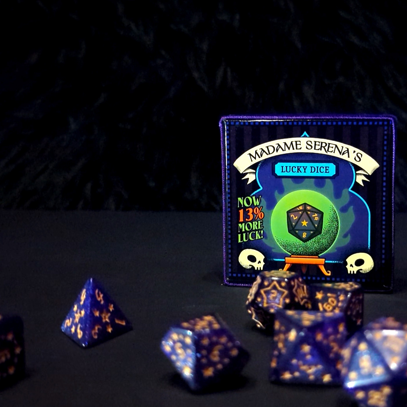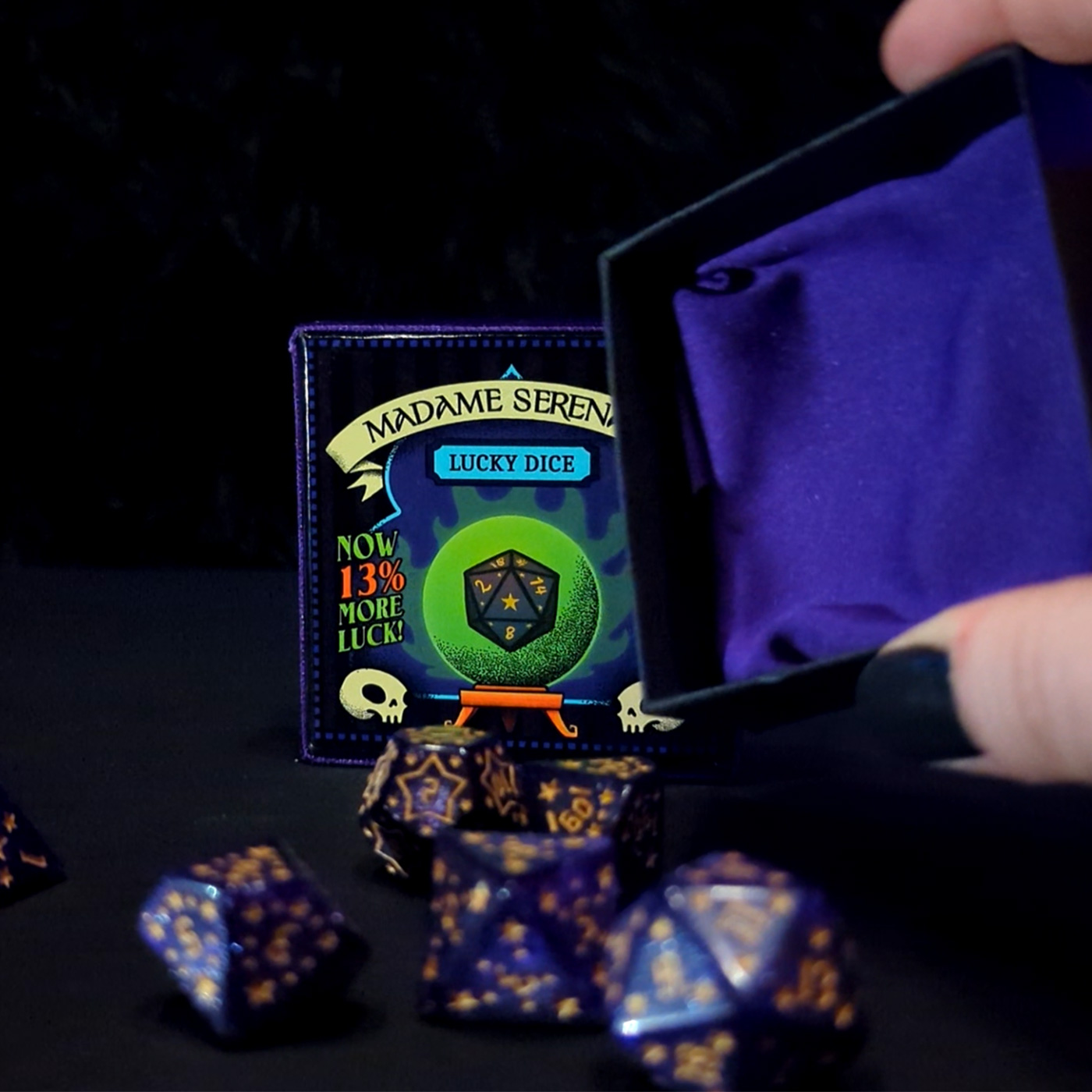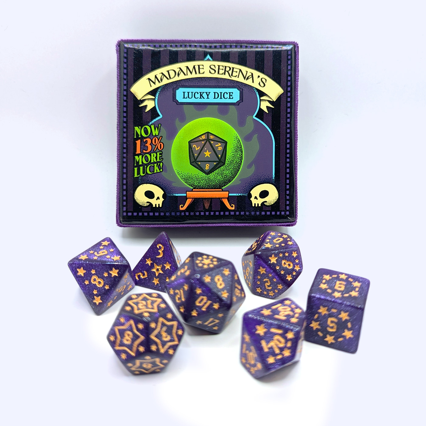 Madame Serena’s Lucky Dice är ett magiskt tärningsset för dig som tror på kosmiska krafter, stjärnornas vägledning, eller bara tur!
