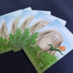 Set med 5 Rabbit-tokens för Magic the Gathering. 63×88 mm, 300 gsm slät finish. Originalillustration av Anna Grape – sleevable och spelklara.