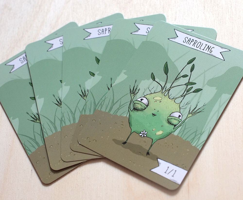 Ett set med 5 gröna Saproling-tokens för Magic: the Gathering.